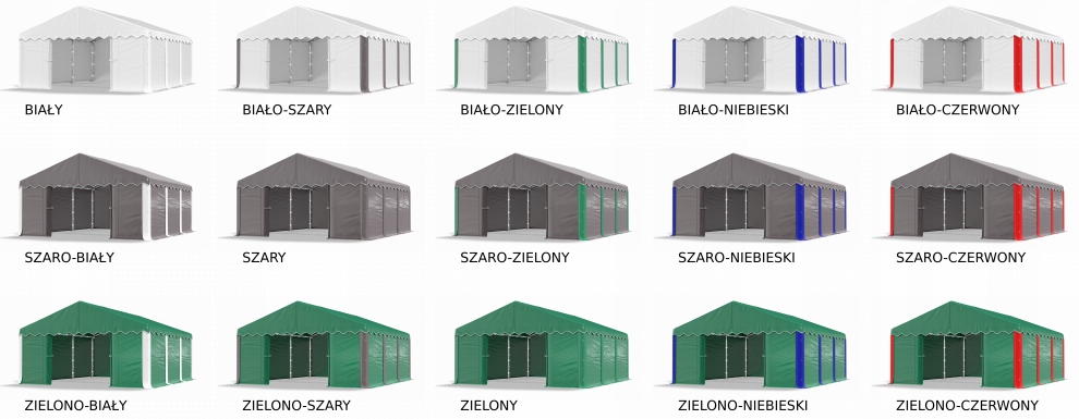 білий, біло-сірий, біло-зелений, біло-синій, біло-червоний, сіро-білий, сірий, сіро-зелений, сіро-блакитний, сіро-червоний, зелено-білий, зелено-сірий, зелений, зелено-блакитний, зелено-червоний