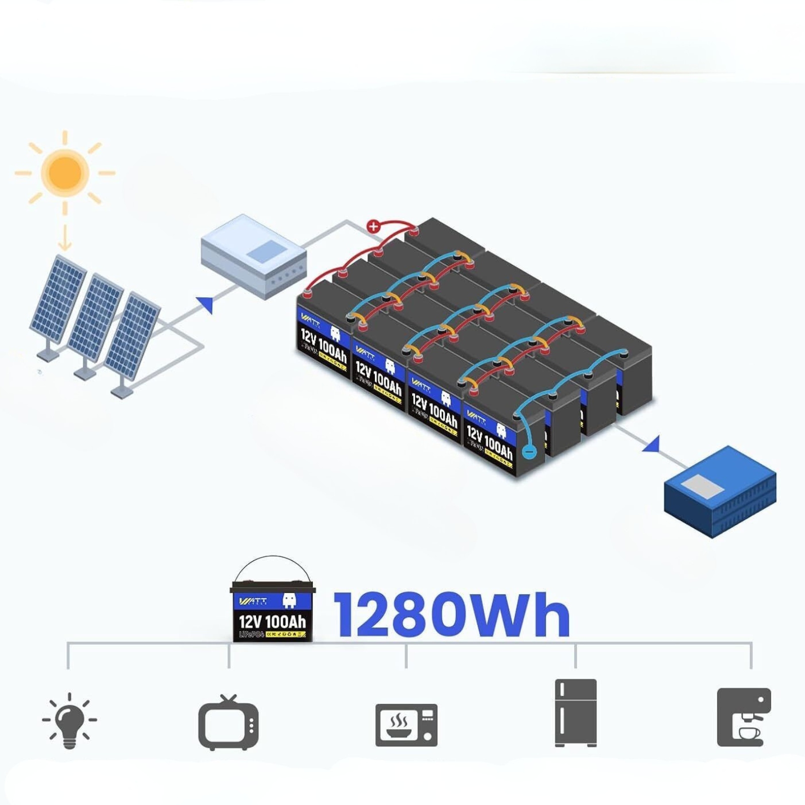 12V 100Ah LifePo4 АКУМУЛЯТОР ОБСЛУГОВУВАННЯ-БЕЗКОШТОВНА АВАРІЙНА ЕНЕРГІЯ СОНЯЧНА